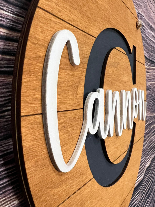 Name & Initial Wood Round Door Hanger, Shiplap Sign, CrankyCrones