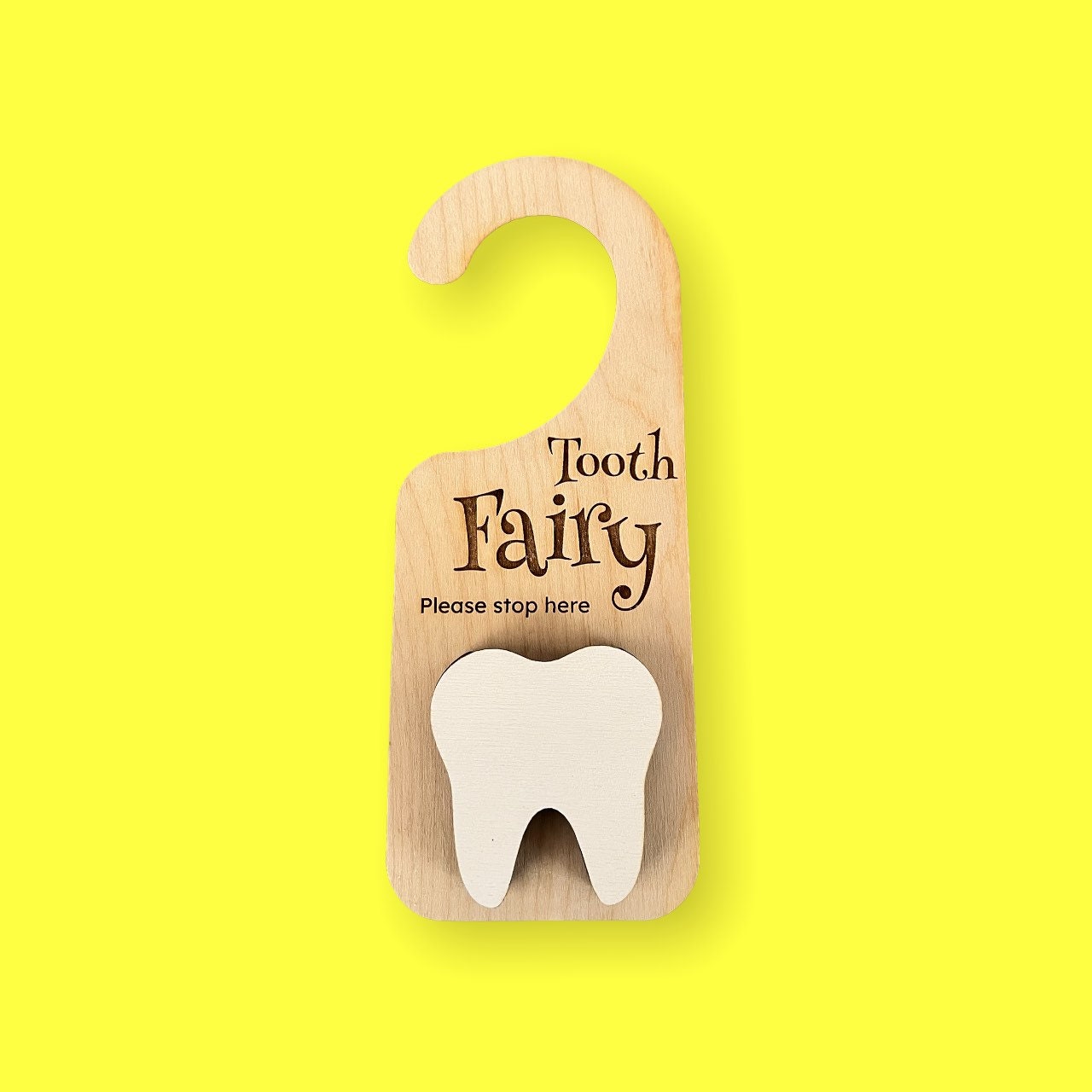 Tooth Fairy Please Stop Here door hanger, Personalized tooth and money holder, Whimsical child’s gift, messy room solution